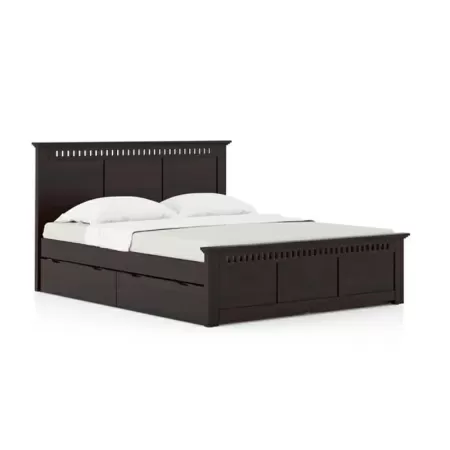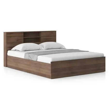 Wood King Size Box Storage Bed in Classic Walnut Finish