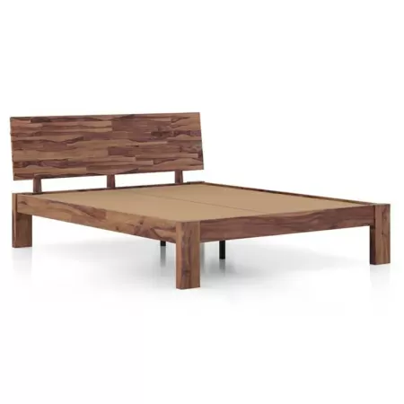 Solid Wood Queen Size Non Storage Bed in Teak Finish