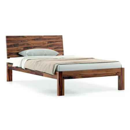 Fidora Solid Wood Single Size Non Storage Bed in Teak Finish