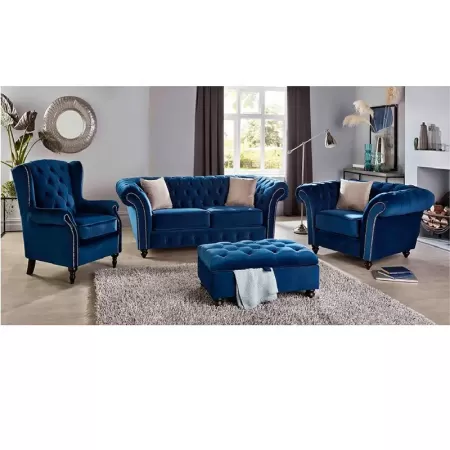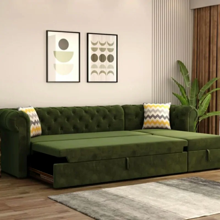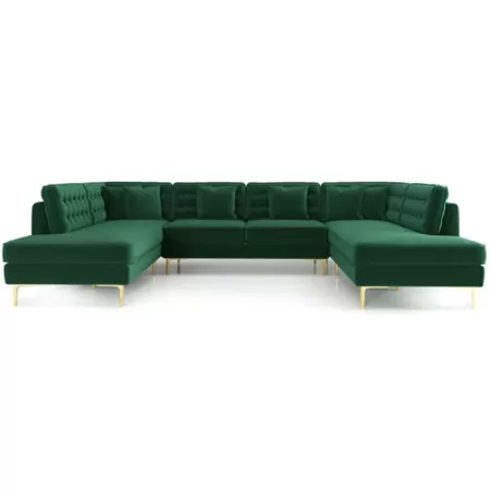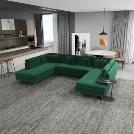 L Shape 5 Seater Sofa - Fabric Dark Green Velvet