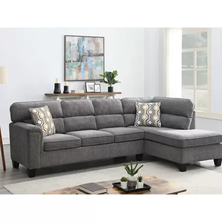 Dark Grey L Shape Sofa With Louger With Ajustable Headrest