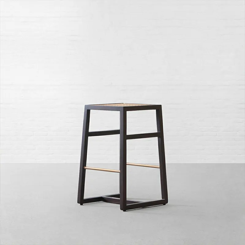 Handwoven rattan seat for a natural, breezy aesthetic.