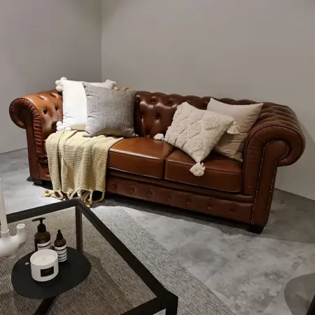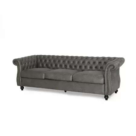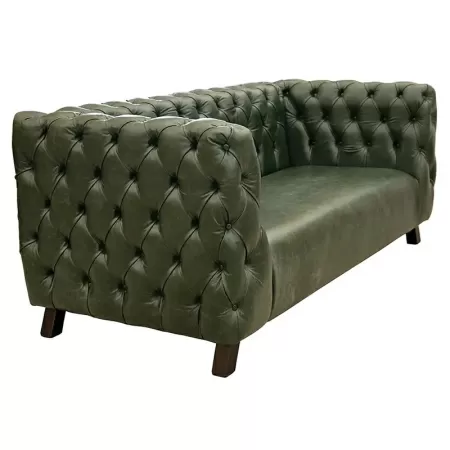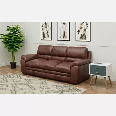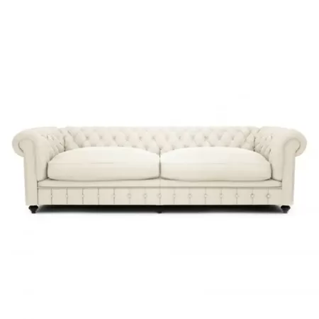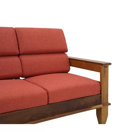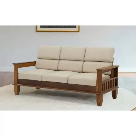Wood Three Seater Sofa with Beige Moulded Foam Cushions