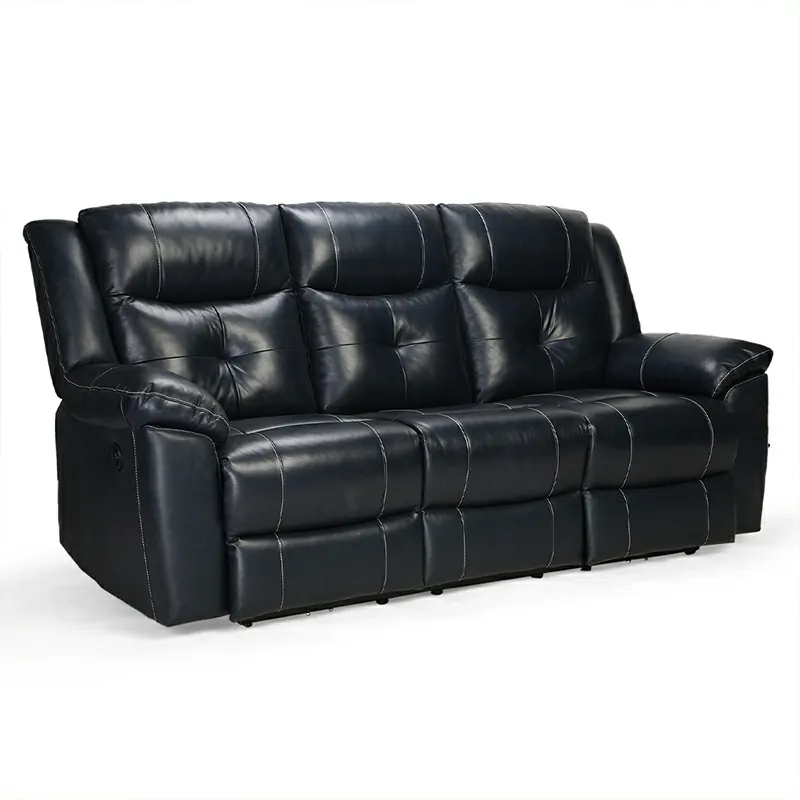 Elevate your living room with the stylish and functional Three Seater Recliner Sofa – Zeal. Crafted in a sophisticated two-tone navy blue half-leather finish, it adds a bold and modern touch. This motorized recliner offers smooth, independent reclining for ultimate personalized comfort. Designed with ergonomic contours and plush cushioning for full-body support. A perfect blend of premium materials and tech-driven relaxation. Ideal for urban homes, entertainment spaces, and modern lifestyle settings.