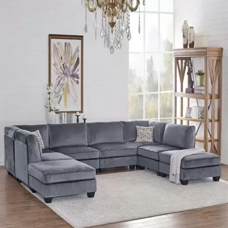 Grey Velvet U Shape - Modern Sofa