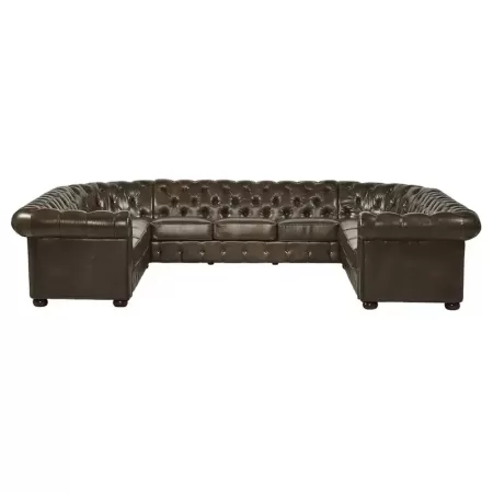 Chesterfield U Shape Sofa - Brown Leatherette